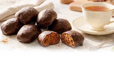 Безупречная прямоугольная форма пряника словно создана искусным мастером, а аппетитная поверхность покрыта великолепной шоколадной глазурью.