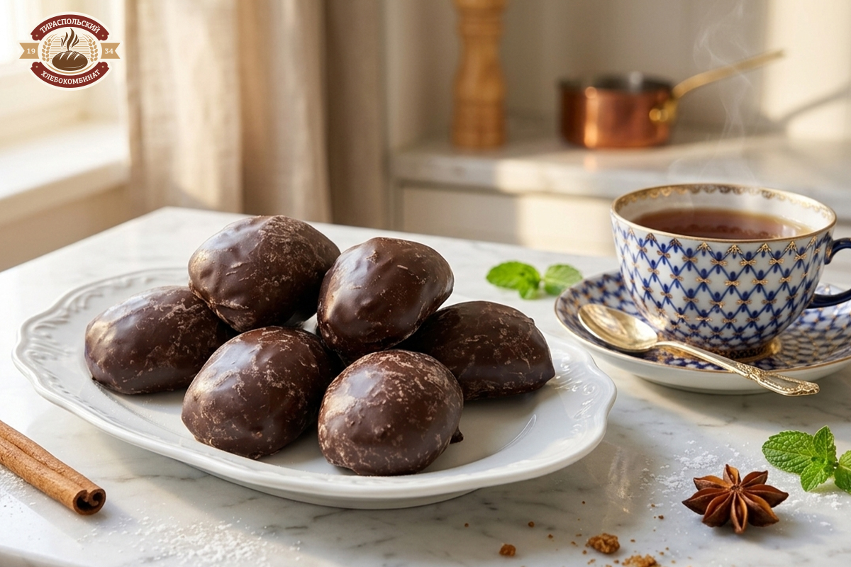 Безупречная прямоугольная форма пряника словно создана искусным мастером, а аппетитная поверхность покрыта великолепной шоколадной глазурью.