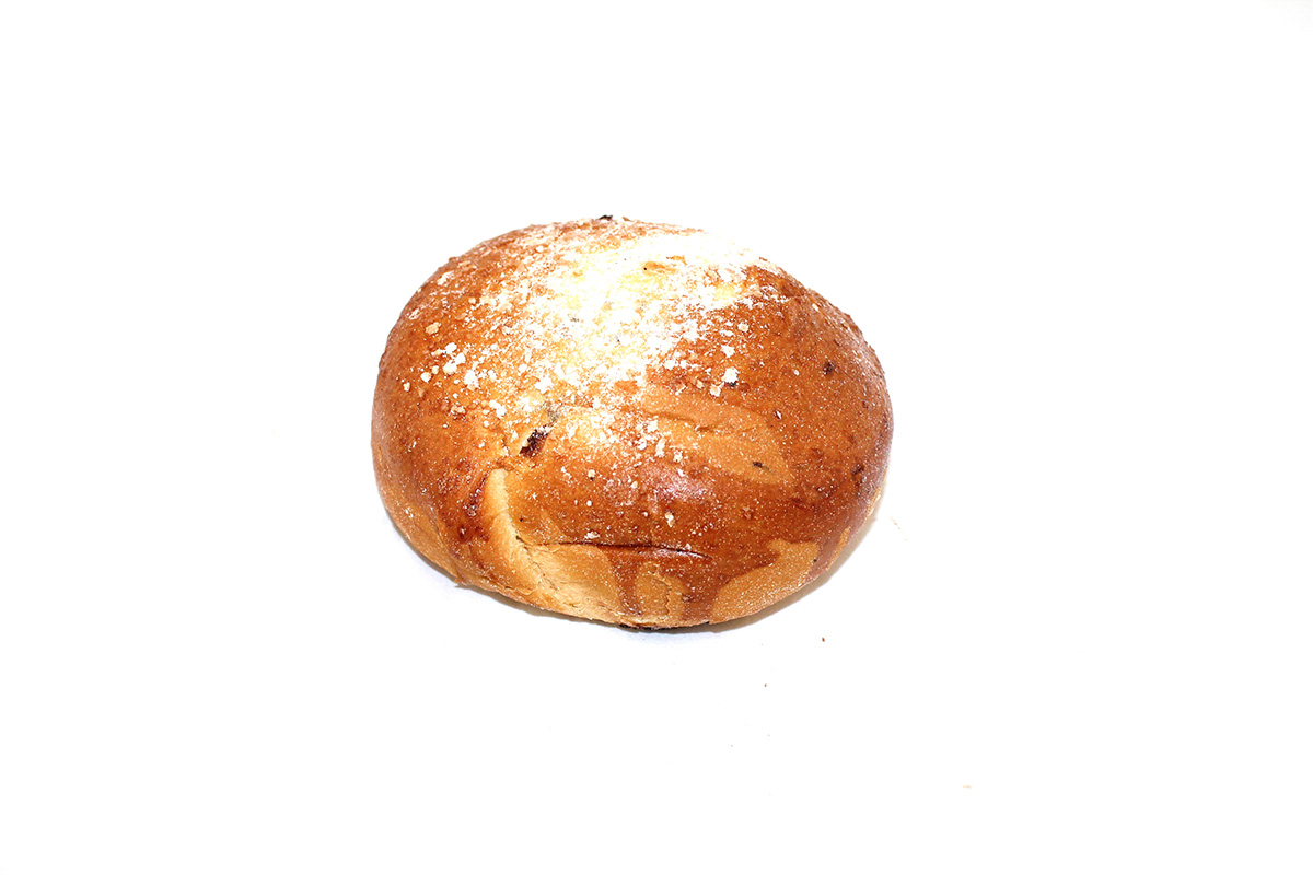 мука пшеничная хлебопекарная высшего сорта, сахар, дрожжи хлебопекарные, масло подсолнечное, изюм, смесь для сдобных изделий (мука пшеничная, соль поваренная, сахар, сыворотка сухая, клейковина пшеничная сухая, лактоза, декстроза, ароматизаторы идентичные натуральным, краситель бета-каротин, антиокислитель аскорбиновая кислота, ферменты), лецитин соевый, маргарин молочный.