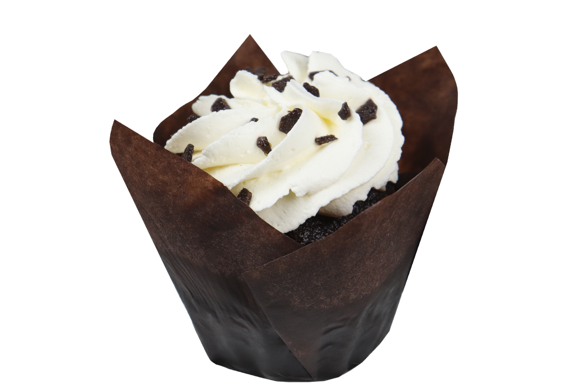 Капкейки - порционные влажные шоколадные кексы небольшого размера, запеченные в тонкой бумаге для выпечки. Отдекорированы сверху кремом на основе творожного сыра, посыпаны шоколадной стружкой.
