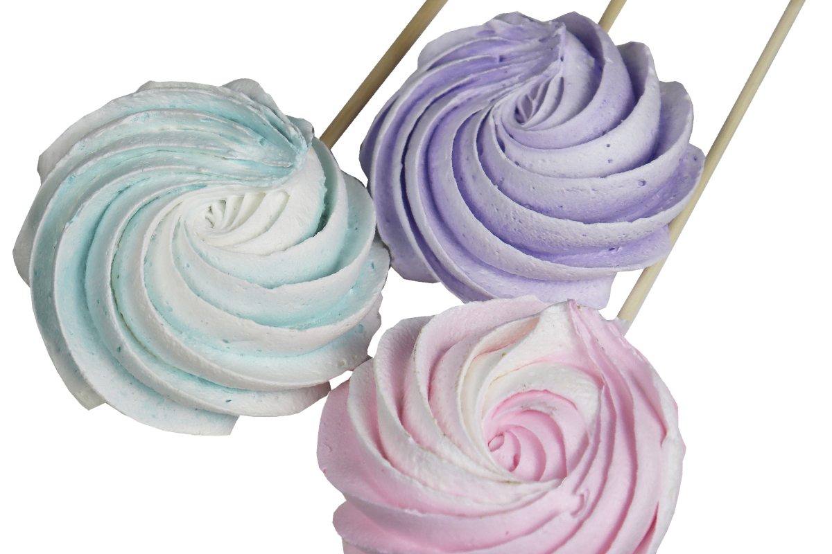Штучные воздушные полуфабрикаты из высушенного белкового заварного крема; с фруктовыми ароматами. На шпажке.
