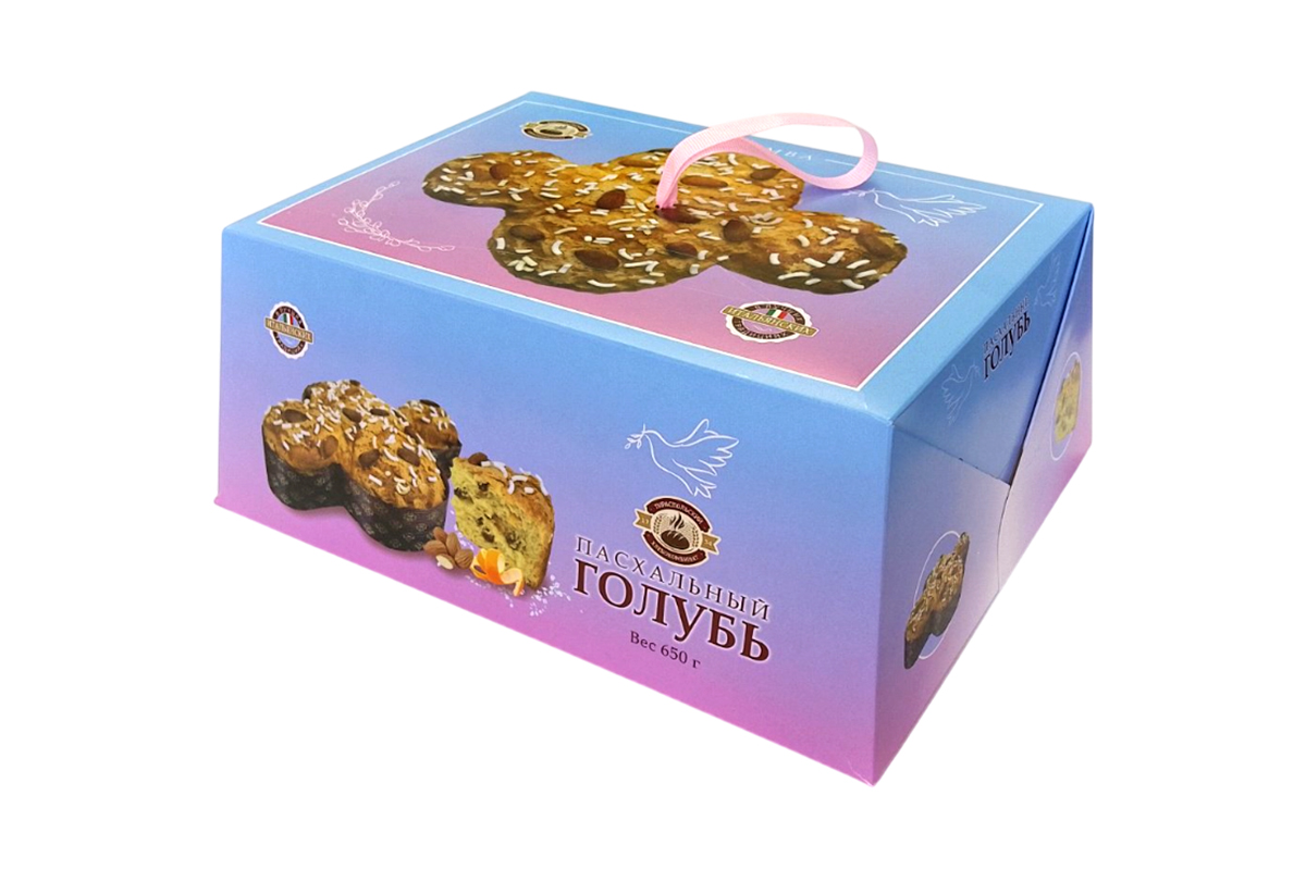 Кулич "Пасхальный голубь" - настоящее лакомство. Мягкое и нежное сдобное тесто с апельсиновыми цукатами и изюмом. Сверху покрыто запеченной хрустящей сахарно-рисовой глазурью. Посыпано гранулами кристаллического сахара и миндалем.