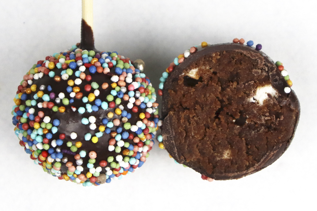 Кейк-попсы - это десерты в виде маленьких круглых пирожных на палочке. Состоят из смеси бисквитной крошки и крема, сформованных в виде шарика, отдекорированы шоколадной глазурью и карамельной посыпкой.
