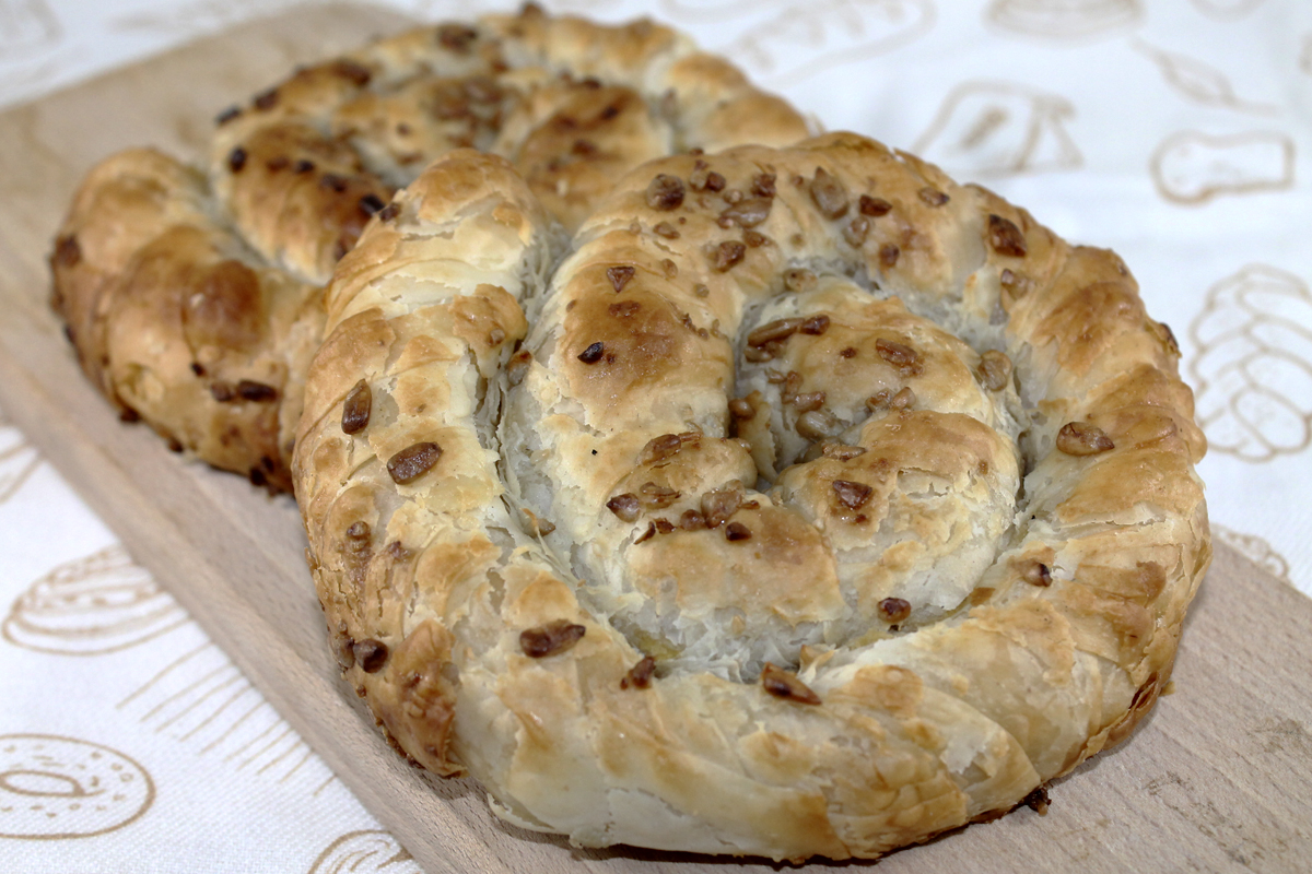 Начинка: картофель вареный, лук репчатый жареный, перец черный молотый.