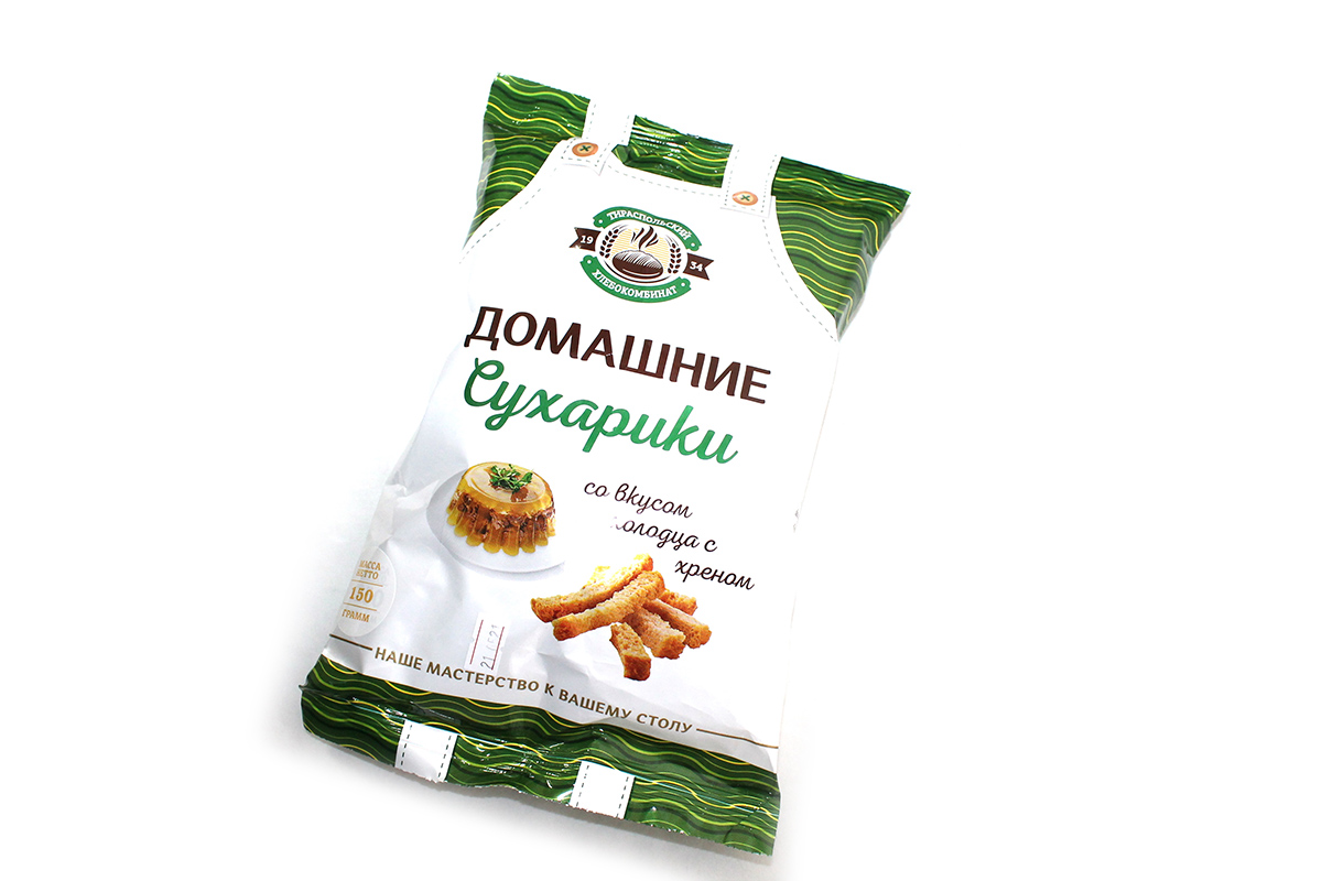 хлеб пшеничный (мука пшеничная 1 сорт, вода питьевая, дрожжи хлебопекарные, соль поваренная пищевая), масло подсолнечное, ароматизатор "Холодец с хреном".