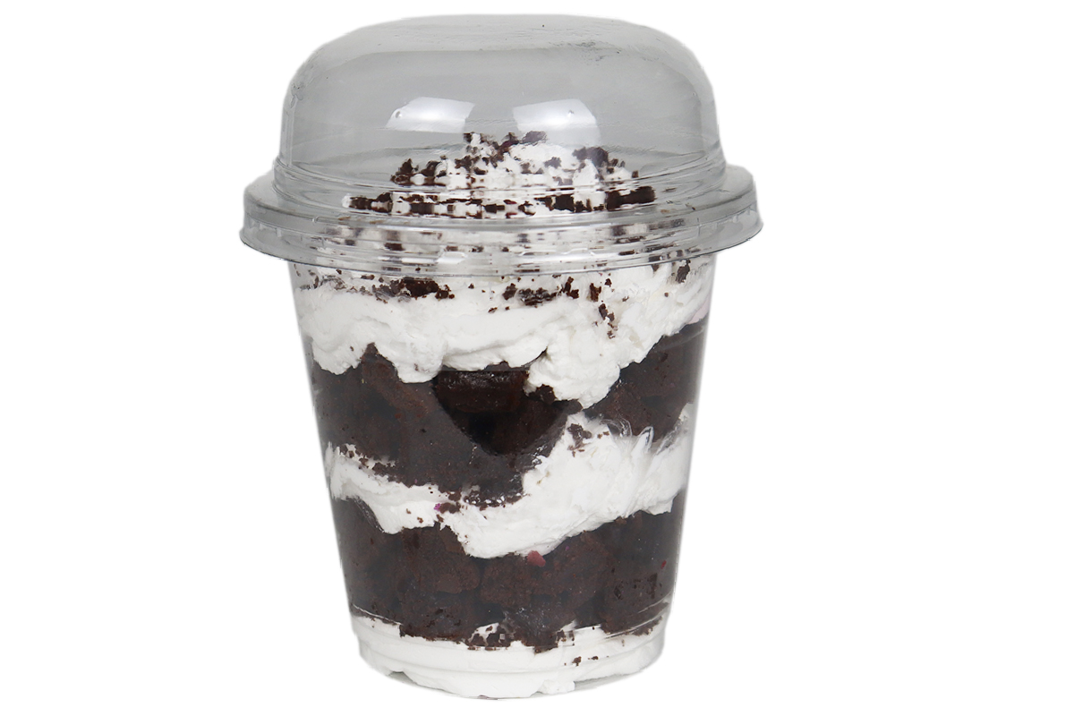 Трайфл шоколадный - десерт в стакане или мини-торт, который состоит из влажного шоколадного бисквита с какао и шоколадной стружкой, крема из растительных сливок и сгущенного молока и фруктовой вишневой начинки.
